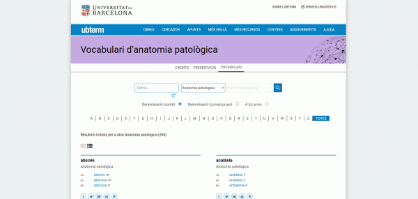 Vocabulari d'anatomia patològica [en línia] Comissió de Dinamització Lingüística de la Facultat de Medicina i Ciències de la Salut. Universitat de Barcelona