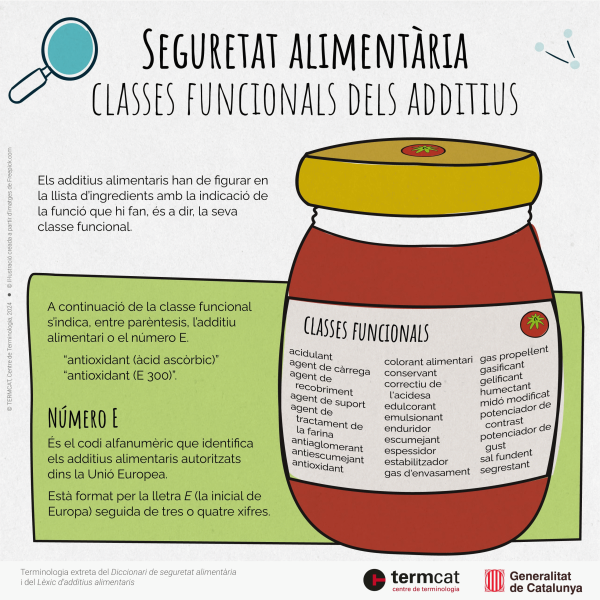 Seguretat alimentària: Classes funcionals dels additius [en línia] Generalitat de Catalunya. Departament de Salut; TERMCAT, Centre de Terminologia