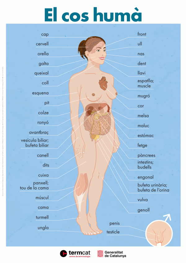El cos humà [cartell] Generalitat de Catalunya. Departament de Salut; Departament de Política Lingüística; TERMCAT, Centre de Terminologia